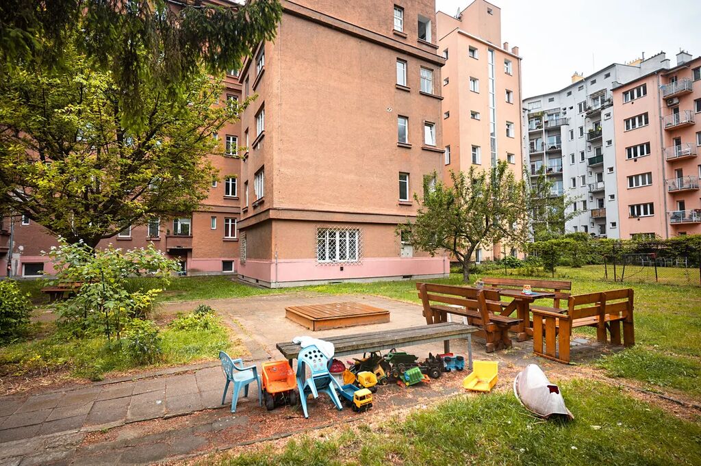 Součástí domu je velká a udržovaná zahrada ve vnitrobloku, určená pouze pro obyvatele. Nabízí příjemné místo k odpočinku v zeleni, přestože se dům nachází v těsné blízkosti centra města. K bytu náleží sklep o velikosti 8 m².