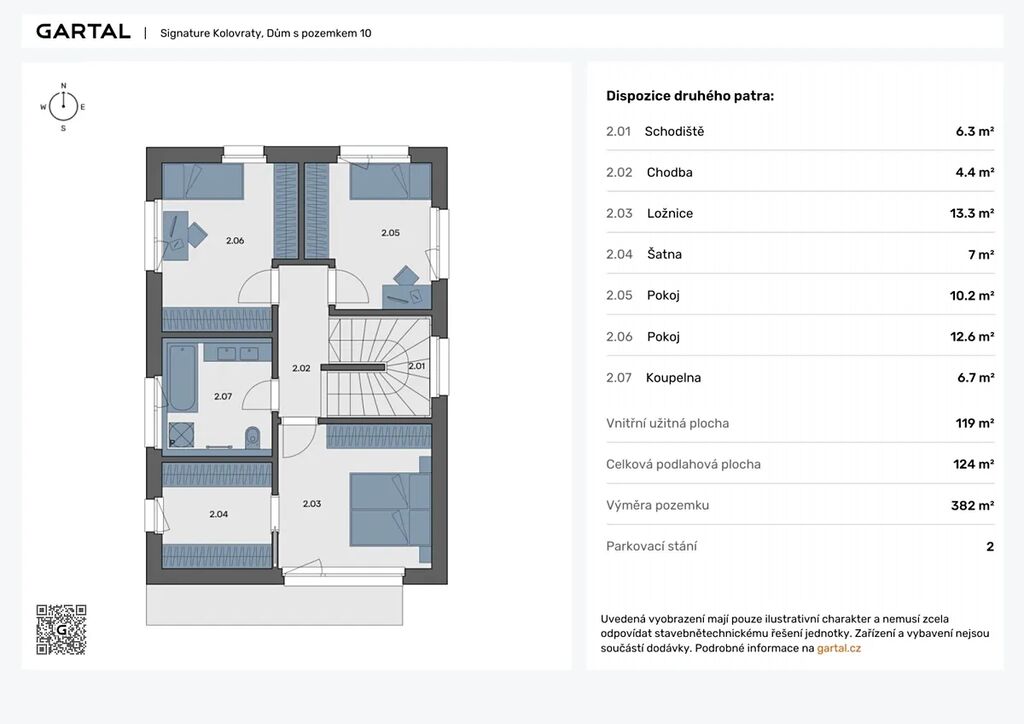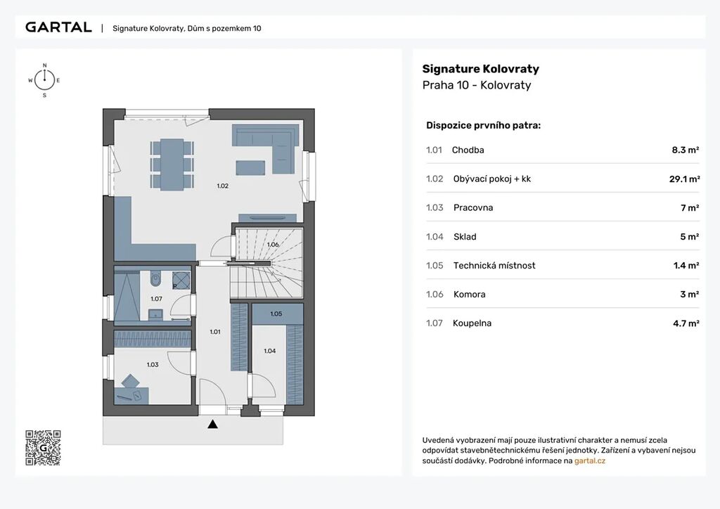 Toužíte po domě, kde jen zavřete dveře a hned ucítíte, že tady jste doma? Máme pro vás nabídku, které vám do detailu splní sen o vlastním bydlení. Nabízíme k prodeji moderní rodinný dům se zahradou o dispozici 5+kk (SK10) o celkové ploše 124 m2 v klidné lokalitě Prahy 10. První, co si na svém novém domovu zamilujete, je prostor. Je ho tu tolik. Domy jsou promyšlené do posledního metru čtverečního, s dostatkem úložných řešení. Obývací pokoj je spojený s kuchyní, v ložnici na vás čeká soukromá šatna, kde si každé ráno v klidu vyberete outfit, ve kterém se budete cítit skvěle celý den, a děti půjdete postupně budit do dvou velkých samostatných pokojů. Pokud pracujete z domova určitě oceníte také útulnou pracovnu.
