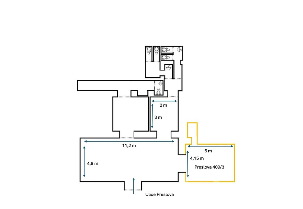 Prostor bude k dispozici od ledna 2026. Tvoří jej hlavní místnost se zřízeným barem a dostatkem prostoru pro hosty, na kterou navazuje menší místnost vhodná jako další část restaurace nebo samostatný salonek. Dále se zde nachází plně vybavená kuchyně, toalety pro hosty, zázemí pro personál s vlastním sociálním zařízením a také samostatná skladovací místnost.