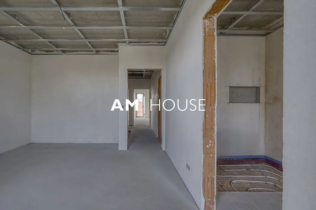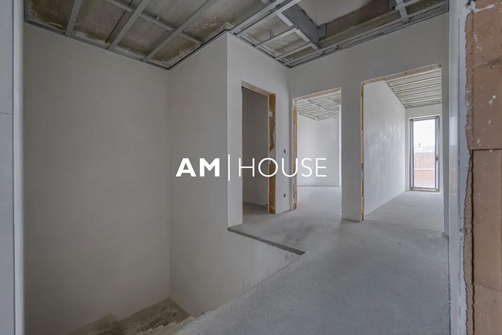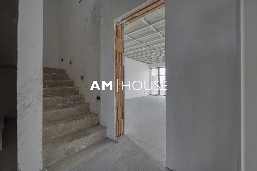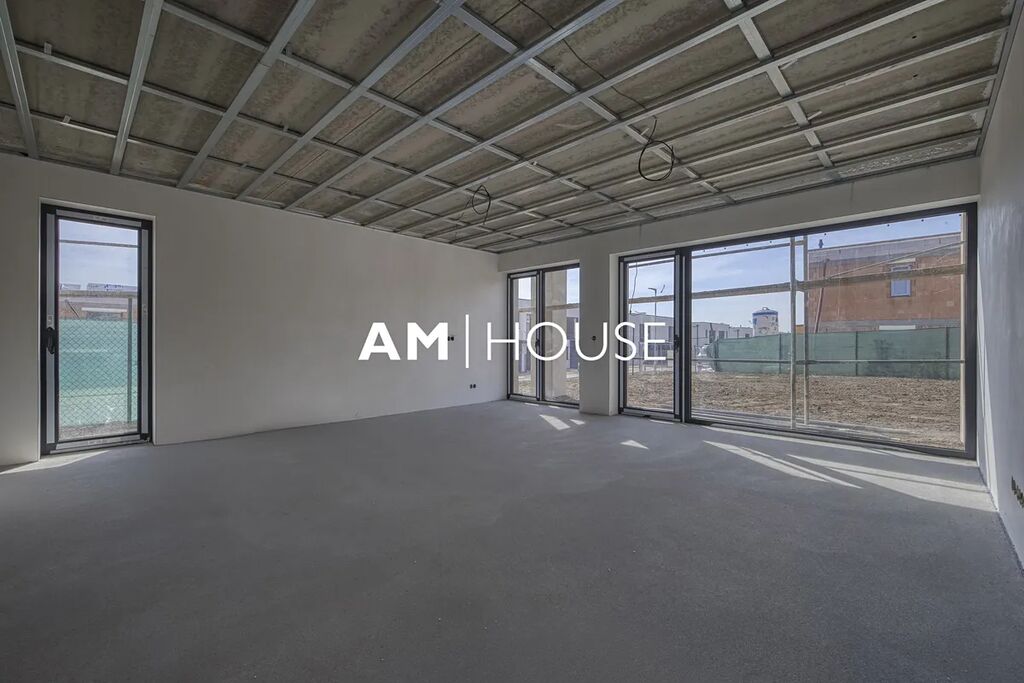 Tento unikátní byt se nachází v moderním dvojdomě na pozemku o rozloze 372,56 m². Prodává se jako samostatná bytová jednotka zabírající celou polovinu domu se samostatným vchodem, garáží s možností přestavby na plnohodnotnou místnost (např. pracovna nebo pokoj) díky podlahovému vytápění, a dvěma venkovními parkovacími stáními.