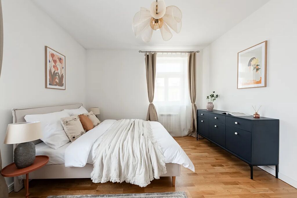 Interiér bytu byl navržen zkušenou designérkou a nabízí elegantní kombinaci stylu, funkčnosti a originality. Světlý a vzdušný prostor s důmyslným řešením interiéru vytváří příjemné místo pro život i investici. Ačkoliv v naprostém centru Prahy, byt je díky své západní orientaci naprosto tichý a klidný.