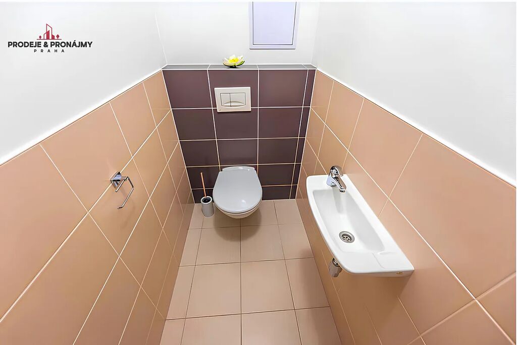Koupelna s vanou a záchod s umyvadlem jsou odděleny.