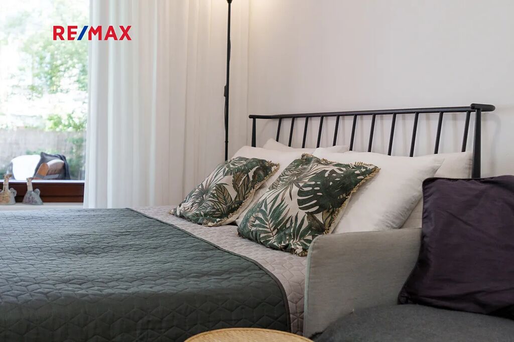 Byt prošel kompletní rekonstrukcí a je plně vybavený, takže je připraven k okamžitému nastěhování. Součástí je moderní koupelna se sprchovým koutem a WC. Velkou předností bytu je prostorná terasa s předzahrádkou o velikosti 39 m², ideální pro relaxaci, posezení s přáteli nebo domácí pěstování.