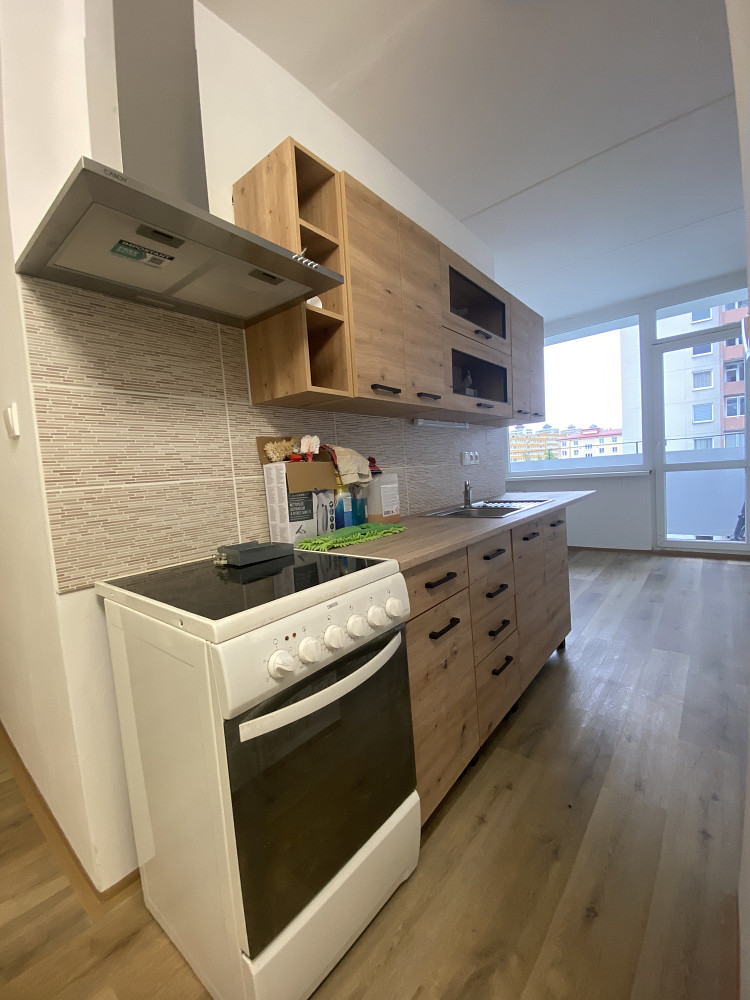 Byt prošel kompletní rekonstrukcí - podlahy, kuchyňská linka, koupelna, dveře.