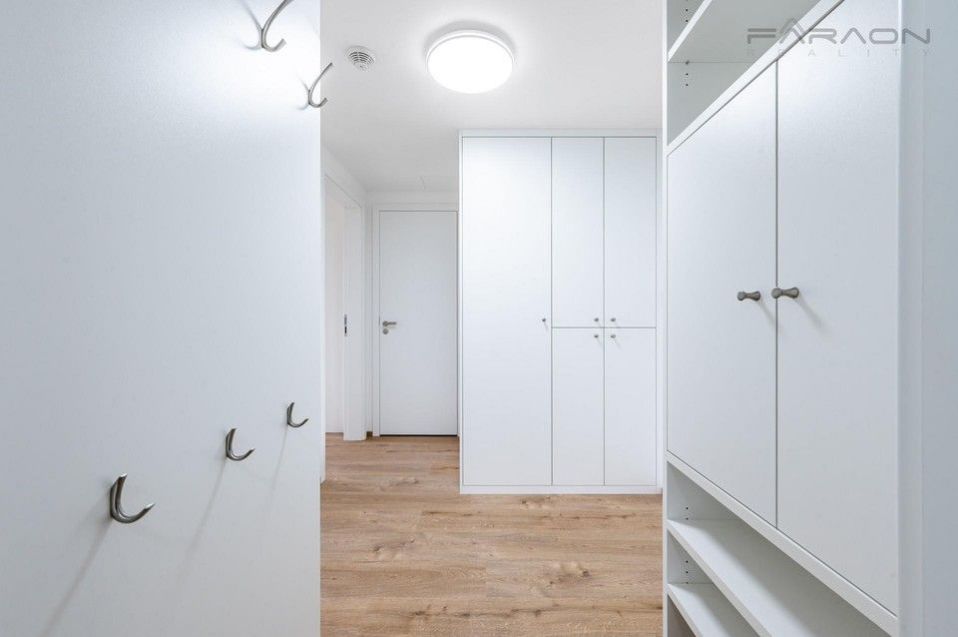 Vybavení bytu zahrnuje moderní kuchyňskou linku se spotřebiči elektrickou troubou, indukční varnou deskou, myčkou a lednicí s mrazákem a dostatek úložných prostor včetně vestavěných šatních skříní. V bytě je instalováno podlahové topení, rekuperace, elektrické předokenní rolety, kvalitní osvětlení, plastová okna s izolačními skly a vinylová podlaha v dekoru dřeva. Byt disponuje kompletně vybavenou předsíní s úložnými prostory a skříněmi vše je nové a připravené k okamžitému užívání.