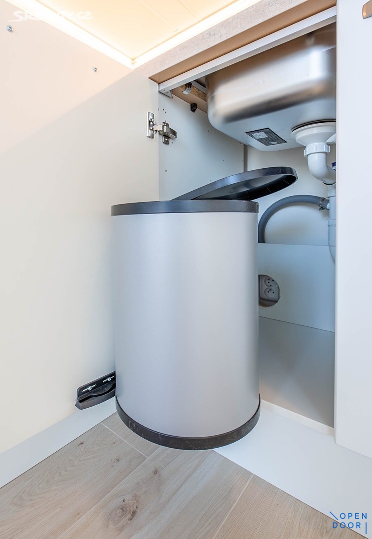 Obytné místnosti směřují do ulice. Kuchyň je vybavena kuchyňskou linkou s vestavěnými spotřebiči – lednicí s mrazákem, myčkou nádobí, pračkou elektrickým sporákem s varnou deskou a troubou, digestoří. Koupelna je se sprchovým koutem, WC je umístěno v koupelně. Předsíň s kuchyní spojují posuvné dveře se skleněnou výplní. Byt je vyladěn do příjemných světlých odstínů, charakteristickým znakem všech místností je ergonomické řešení s dokonalým využitím obytného prostoru a vybavení až do nejmenších detailů (led osvětlení kuchyňské linky, vestavěné koše, v koupelnách topné žebříky a zabroušená zrcadla, stylové bytové zvonky atd.).