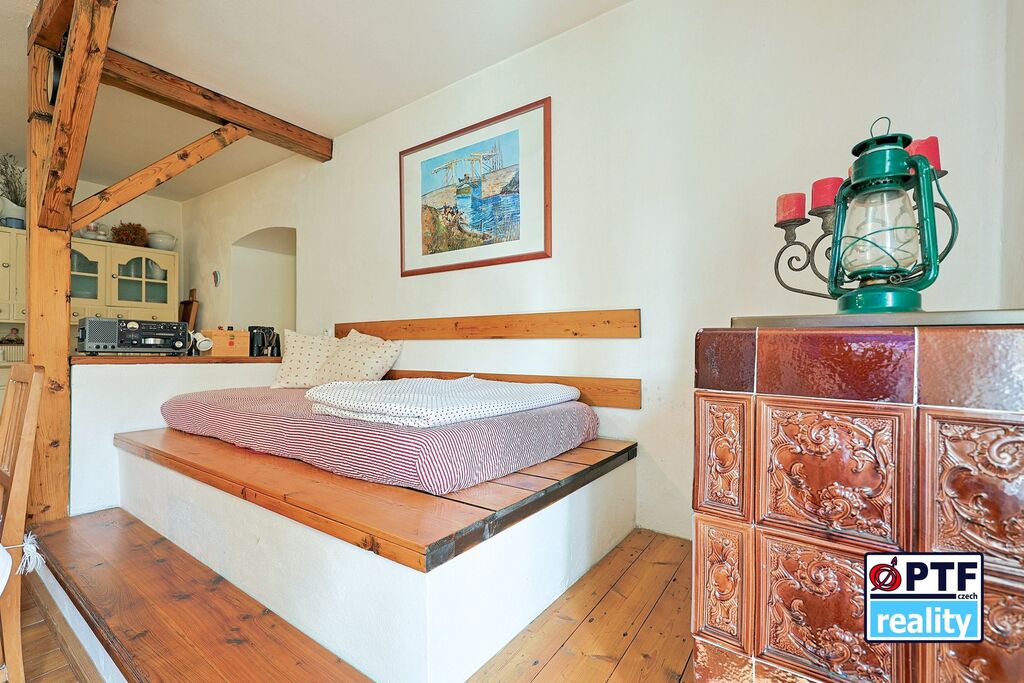 Vaření: kachlová kamna + elektrická varná deska v kuchyni