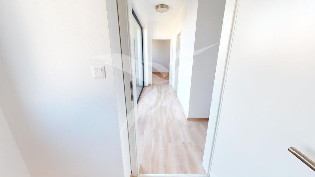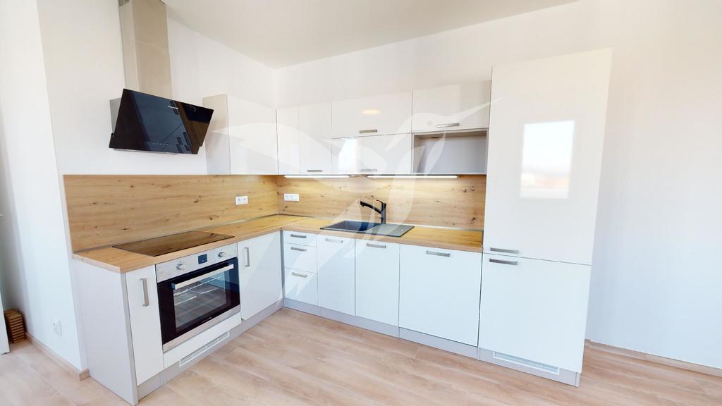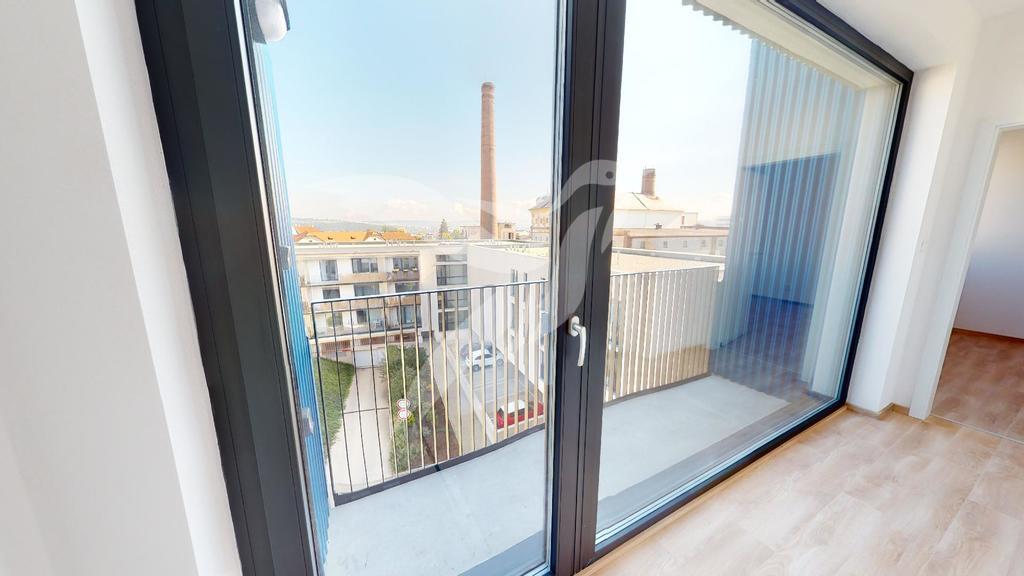 Bytová jednotka o velikosti 58 m2 se nachází v 5. NP cihlového domu s výtahem a skládá se z předsíně, pokoje včetně kuchyňské linky, samostatného pokoje, koupelny s toaletou, komory, balkonu a součásti je i sklep situován na patře bytového domu a garážové stání v komplexu bytového domu. Součásti vybavení je nová kuchyňská linka s vestavěnými spotřebiči (kombinovaná chladnička, vestavěná elektrická trouba, indukční varna deska + digestoř, vestavěná myčka). Vytápění a ohřev vody je zajištěn dálkovými dodávkami. Předností je skvělá lokalita s výbornou občanskou vybaveností i dostupnosti MHD do centra města - v docházkové vzdálenosti škola, školka, dětské hřiště i OC Galerie Slovany.