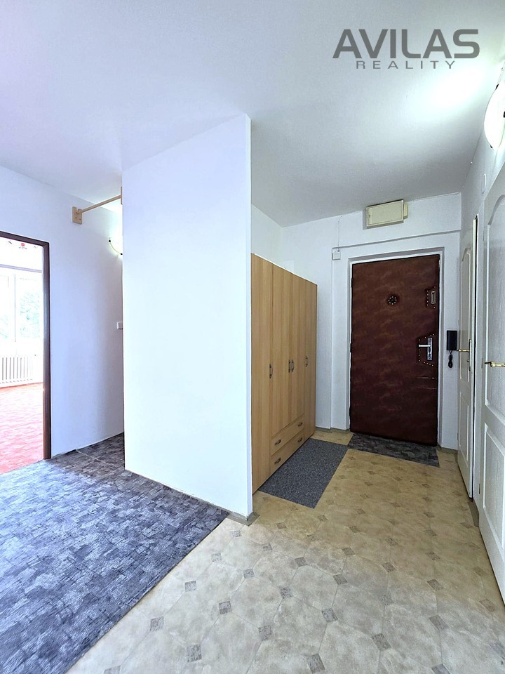 Dispozice bytu: obývací pokoj, kuchyně s kuchyňskou linkou, pokoj se vstupem na lodžii, ložnice, koupelna s vanou, WC, komora a předsíň. Podlahy PVC (kuchyň, chodba), koberec (obývací pokoj a ložnice), dlažba (koupelna a wc). K bytu dále náleží vlastní sklepní kóje. Samostatná měřidla vody, topení a elektřiny. Dům je zateplen, udržované a čisté společné prostory domu. Veřejné parkování u domu a ve vnitrobloku se nachází dětské hřiště.