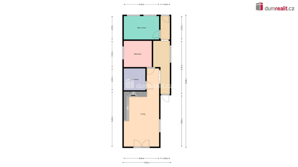 Po vstupu do domu se nachází chodba, která spojuje jednotlivé místnosti. Obývací pokoj s kuchyňským koutem počítá s výstupem na budoucí terasu. Za kuchyní je umístěna koupelna s plánovanou sprchou a WC. Dále najdete samostatnou ložnici a v zadní části domu další, prostornější ložnici a vstup na zahradu.