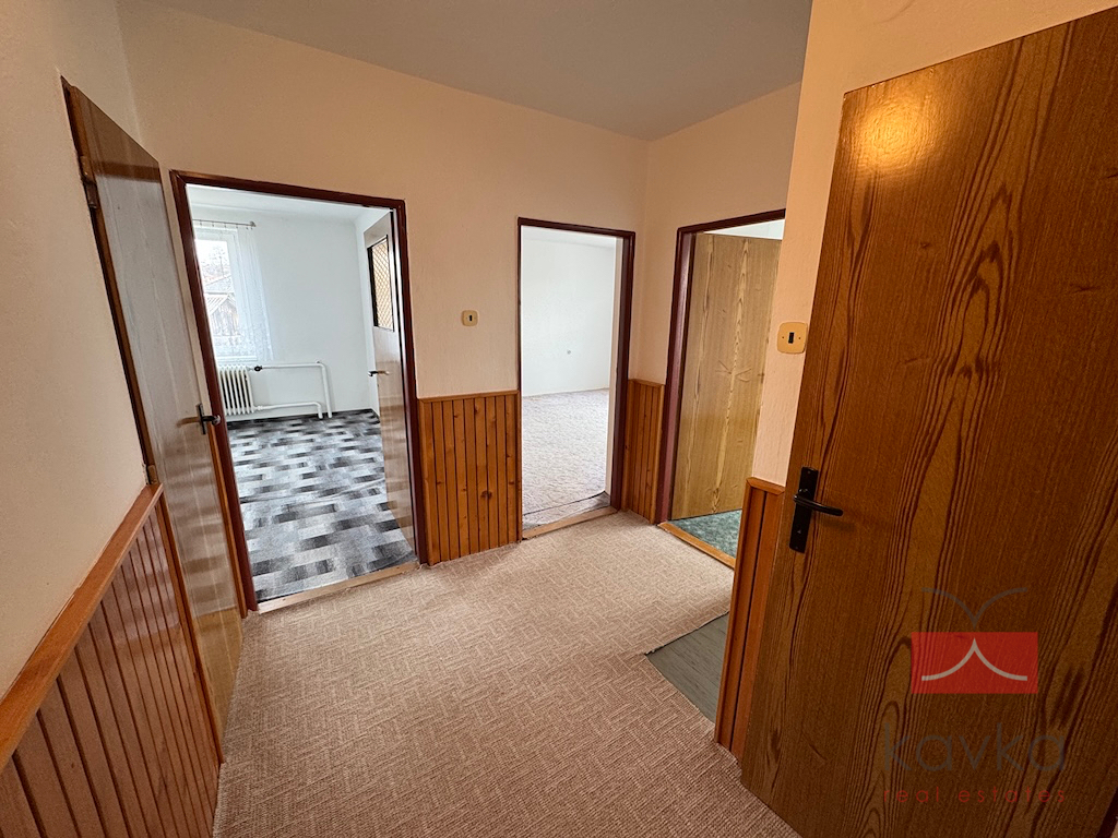 KAVKA REAL ESTATES si Vám dovoluje exkluzivně nabídnout k pronájmu družstevní byt 3+1 o užitné ploše 76,96 m2 a celkové užitné ploše 99,46 m2 v obci Kejžlice - nedaleko Humpolce (6 km – pět minut jízdy autem). Byt se nachází ve 1.NP cihlového domu bez výtahu. Dispoziční členění bytu: vstupní chodba, samostatné WC, koupelna (vana), kuchyň s jídelnou, spíž, obývací pokoj, ložnice, pokoj, sklad, vstupní chodba. Dále k bytu náleží sklepní kóje (8 m2) a kotelna včetně skladu na tuhá paliva (14,5 m2). Vytápění bytu je řešeno plynovým kotlem a kotlem na tuhá paliva. Rekonstrukce únor 2025 (nová plastová okna, vymalování bytu). Velmi klidná lokalita. Veškerá občanská vybavenost v obci. V případě zájmu o více informací či prohlídku kontaktujte makléře společnosti.