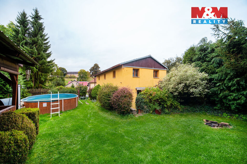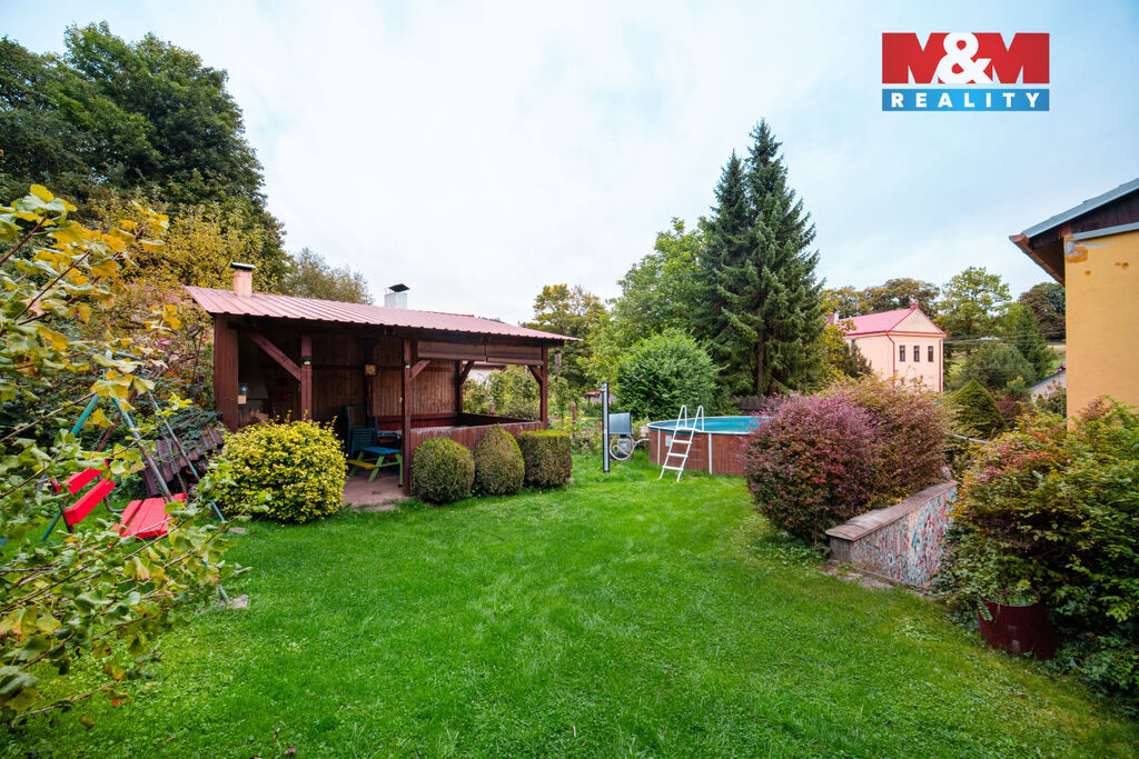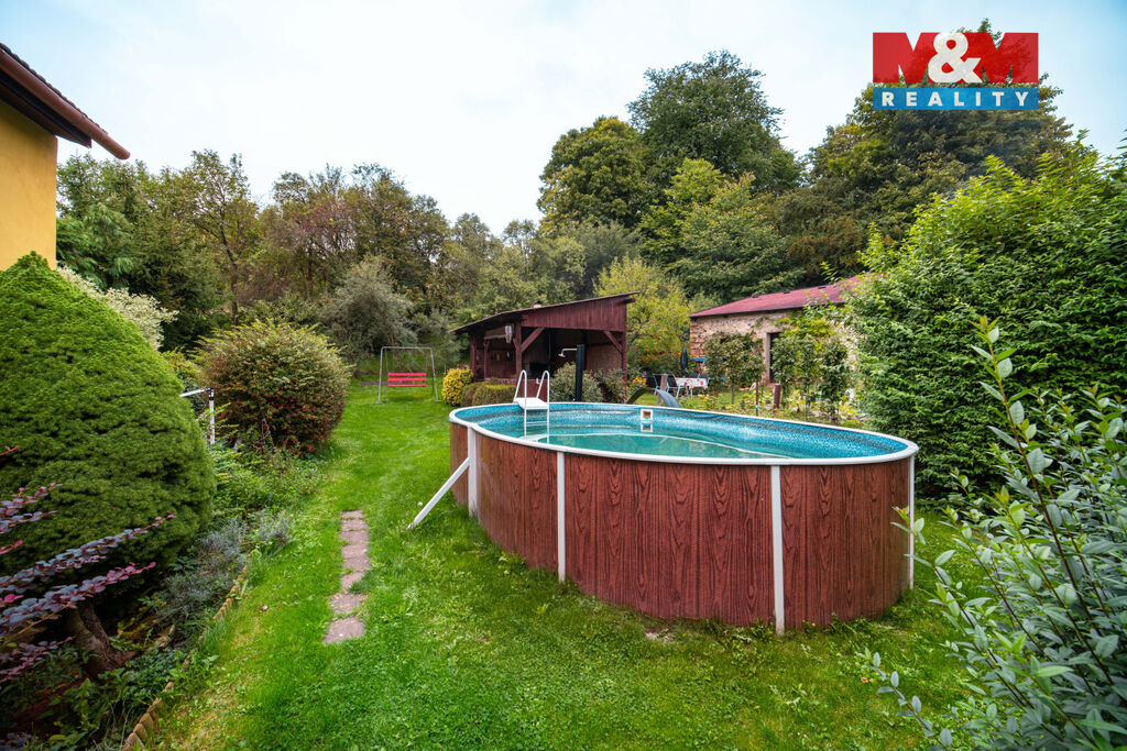 Nemovitost obklopuje udržovaná zahrada. Součástí je bazén, zastřešená pergola s krbem, udírna, pískoviště a atrakce pro děti.