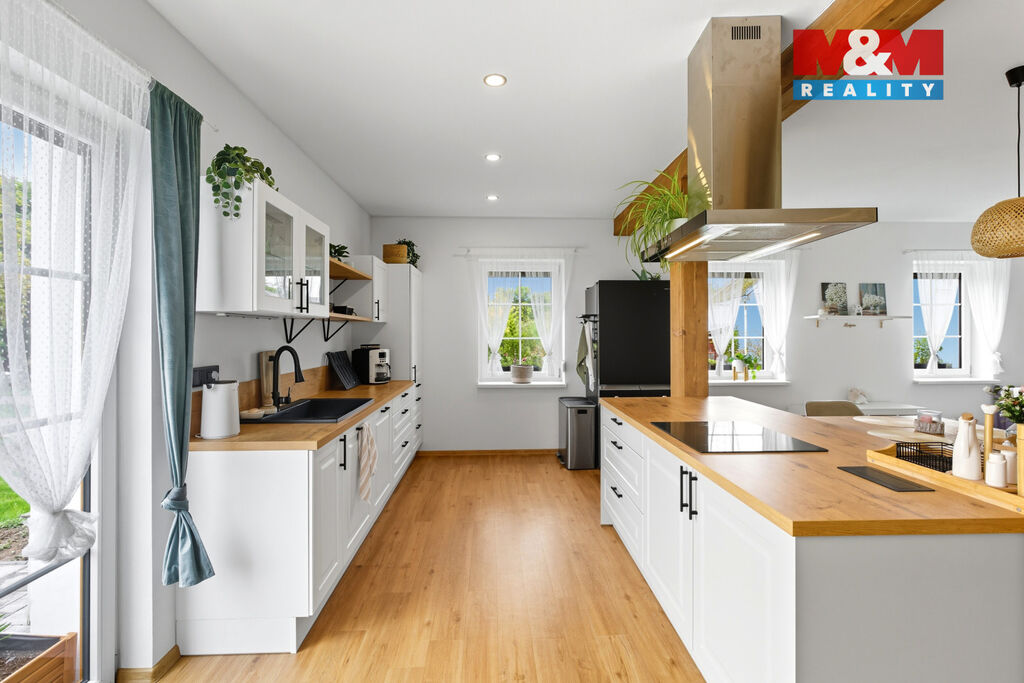 Na prodej prostorný a světlý rodinný dům 3+kk ve velmi klidné obci Olbramov u Černošína. Dům prošel kvalitní rekonstrukcí, má dvě koupelny, sklep, novou kuchyňskou linku a úsporný kotel na tuhá paliva splňující normy EU. Voda je z vlastní vrtané studny, což výrazně snižuje náklady. V 1. NP podlahové vytápění, ve 2. NP nová topná tělesa. Půdní vestavba nabízí další využití. K domu patří velký dvůr, stodola s možností vytvoření garáže a půdní prostory třeba pro letní byt. Z jedné strany je užitková zahrada, z druhé okrasná část s terasou a vstupem do kuchyně. Obec je tichá a přátelská, s dětským hřištěm, rybníky a místní hospůdkou. V okolí jsou krásné procházky a široké možnosti zájmových kroužků a aktivit pro děti. Kompletní občanská vybavenost je vzdálená cca 3 km od domu, škola, školka, obchody. Dům a lokalita je ideální místo pro rodinu, která hledá klid pro bydlení, prostor a další možnost seberealizace. Další info u makléře.