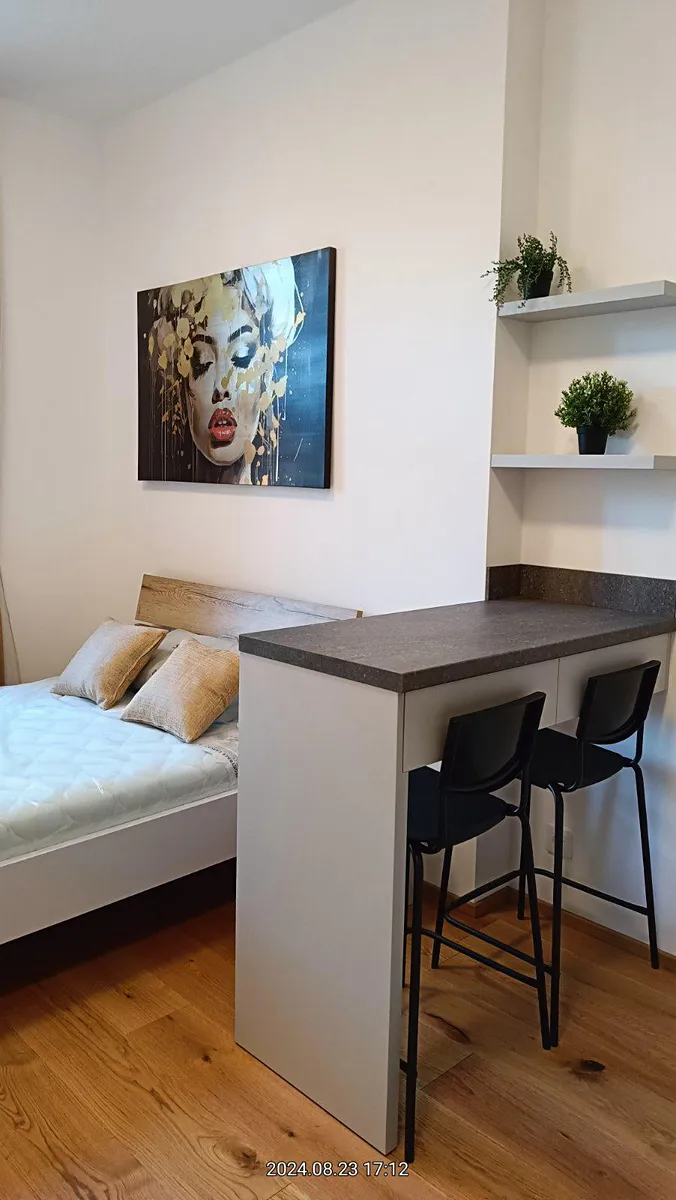 Pokoj +kk 15,7 m2, Koupelna 3,3 m2 , předsíň 1,5 m2.