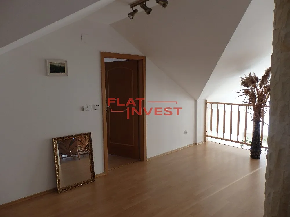 Ve spodním podlaží se nachází otevřený prostor obývacího pokoje, separátní kuchyně, ložnice a 2 koupelny (jedna s rohovou vanou, druhá se sprchovým koutem), v horním podlaží je otevřený prostor, který může sloužit jako další obývací pokoj, ložnice, pracovna a balkon s krásným výhledem do údolí. K dispozici je rozlehlá klidná zahrada plná ovocných stromů.