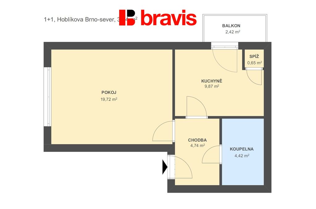 Ve výhradním zastoupení majitele nabízíme k pronájmu byt 1+1 ve zvýšeném přízemí cihlového domu v Brně – Černých Polích, nedaleko centra. Byt o výměře 39 m2 a balkonem 2,4 m2 se nachází v klidné lokalitě na ulici Hoblíkova a prošel rekonstrukcí.