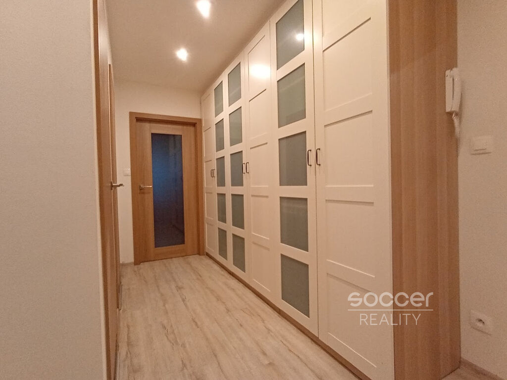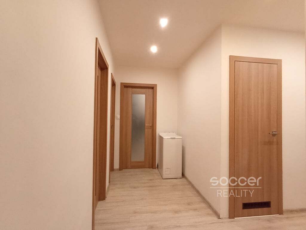 Byt je kompletně vybavený – moderní kuchyňská linka se všemi spotřebiči, sedačka, postel, úložné prostory, pračka. Pokoje jsou neprůchozí. Koupelna se sprchovým koutem, samostatné WC.