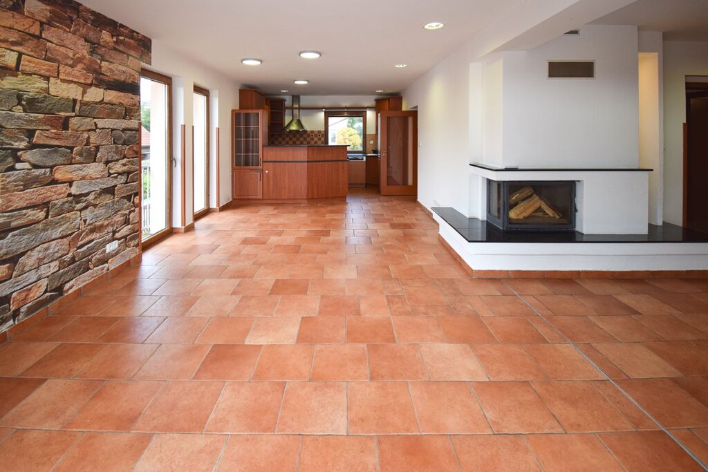 Krbová kamna nejen pro dlouhé zimní večery dodávají obývacímu prostoru nádech příjemné domácí atmosféry. Navazující prostor bazénu za prosklenými dveřmi je pak už jen třešinkou na dortu. Z bazénu můžete pohodlně vstoupit na terasu, přičemž zde máte naprosté soukromí. Privátní prostory domu jsou důmyslně ukryty před zvědavými zraky sousedů i kolemjdoucích.