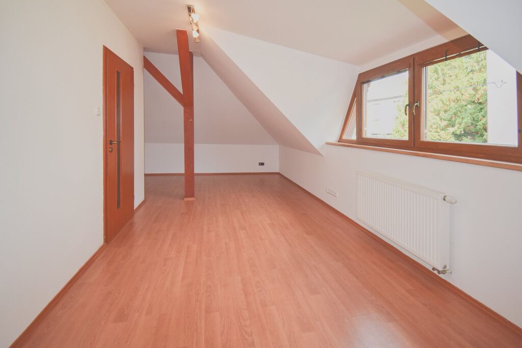 V prvním patře domu jsou 3 ložnice, koupelna s vanou a sprchovým koutem a samostatné WC. Z každého pokoje si můžete užít nádherný výhled do okolí.