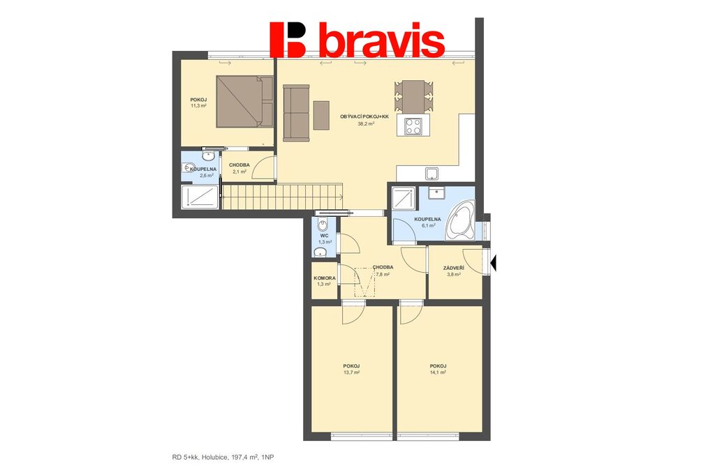 • Velkorysý obývací pokoj propojený s prosvětlenou kuchyní