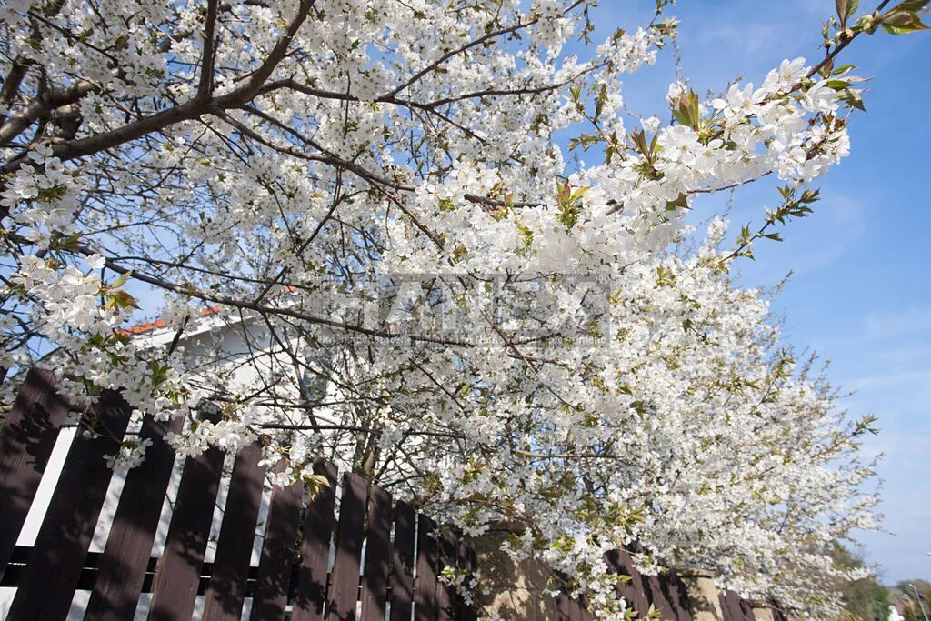 Dům je posledním domem v klidné slepé ulici a je orientován do třešňového sadu.
