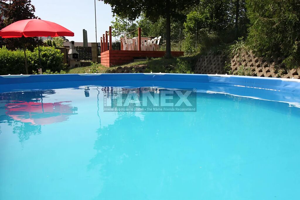 Nemovitost je umístěna ve vzrostlé zahradě v mírném jižním svahu a vede k ní zpevněná příjezdová cesta vhodná pro parkování 2 aut a navíc dvojgaráž u domu.