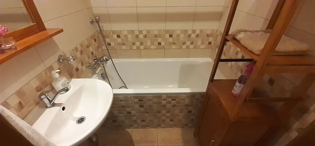 V kuchyni je nová rohová kuchyňská linka se spotřebiči (nová lednice, plynový sporák s elektrickou troubou, starší aut. pračka pouze k dosloužení – pokud doslouží, pořídí si nájemník sám novou, příprava na myčku je v lince)