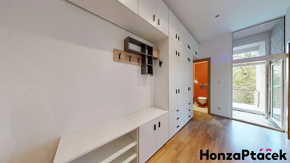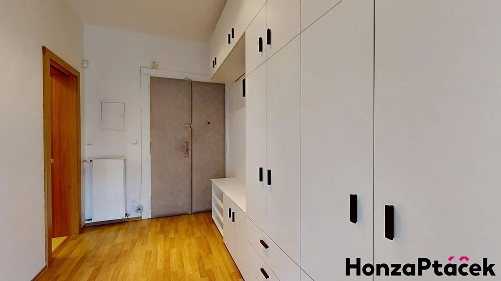 Hlavní obytná místnost nabízí dostatek prostoru pro obývací i jídelní část. Moderní kuchyňská linka je vybavena spotřebiči Bosch a poskytuje komfortní zázemí pro vaření. K dispozici je také menší komora pro uložení věcí. Koupelna prošla rekonstrukcí a je vybavena sprchovým koutem, výhodou je i samostatné WC. V prostorné chodbě se nachází vestavěná sestava skříní, která elegantně řeší úložný prostor. Z chodby je vstup na lodžii s výhledem do klidného vnitrobloku se zelení – ideální místo k ranní kávě či večernímu posezení.