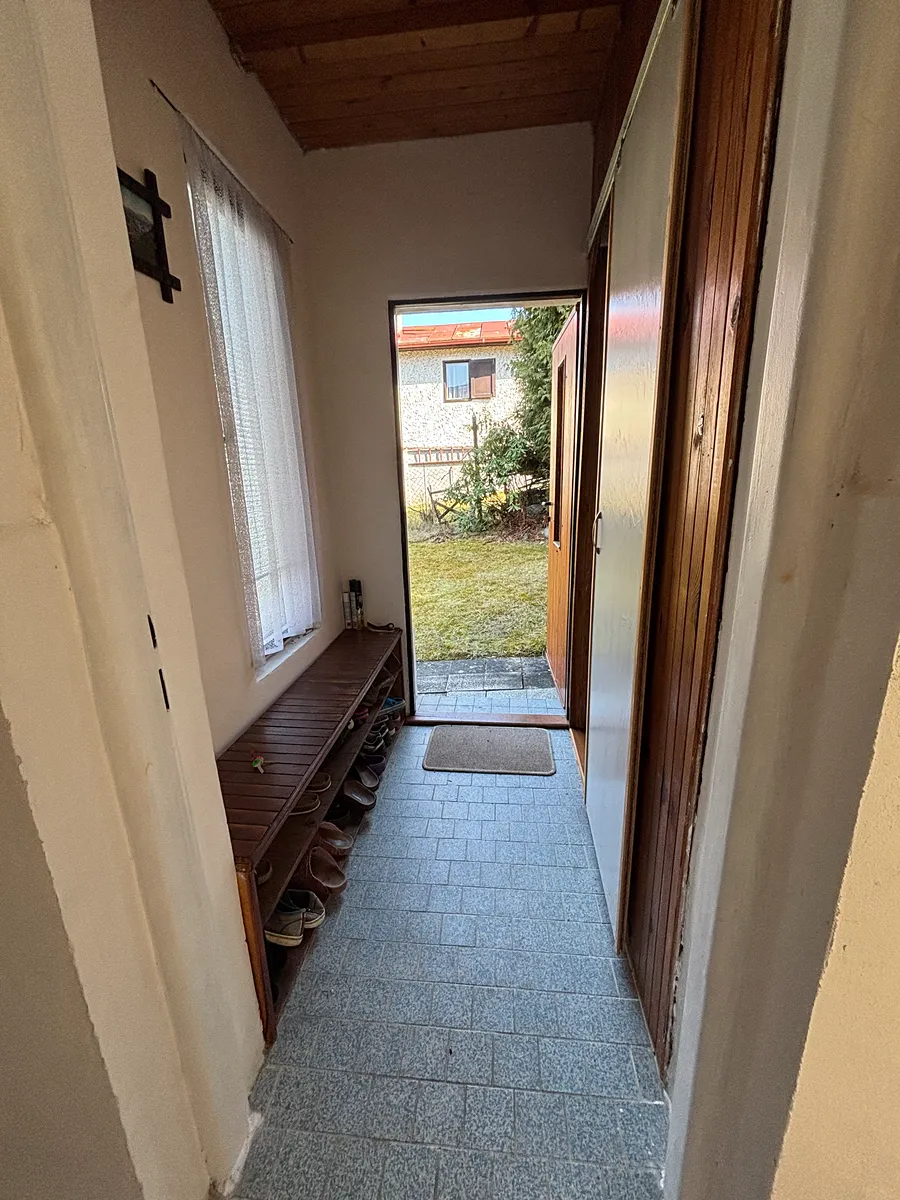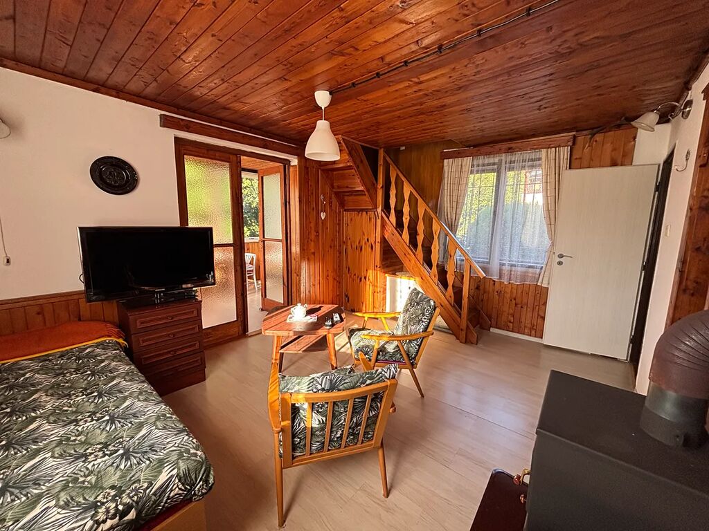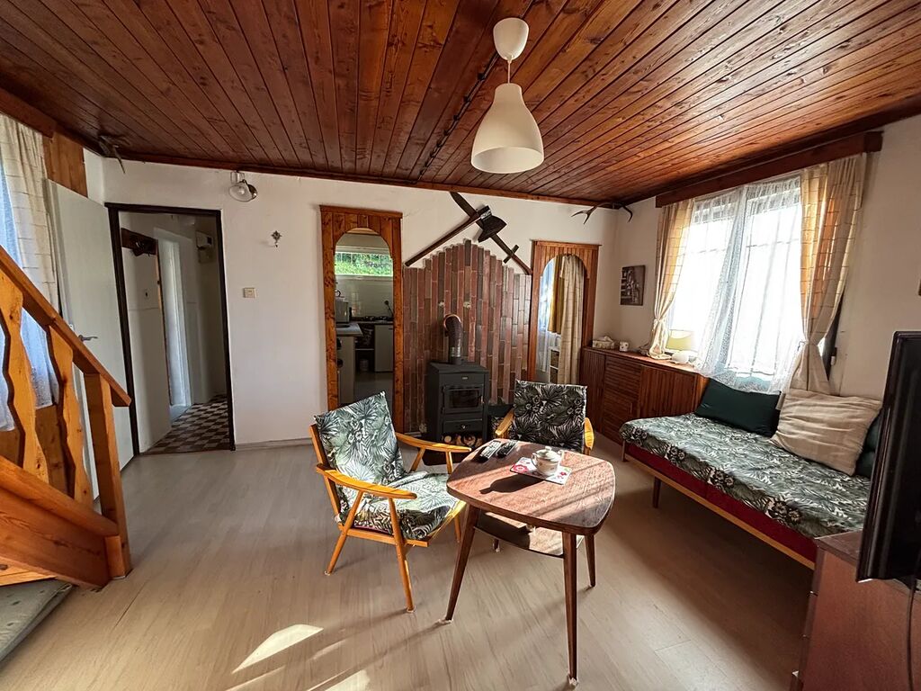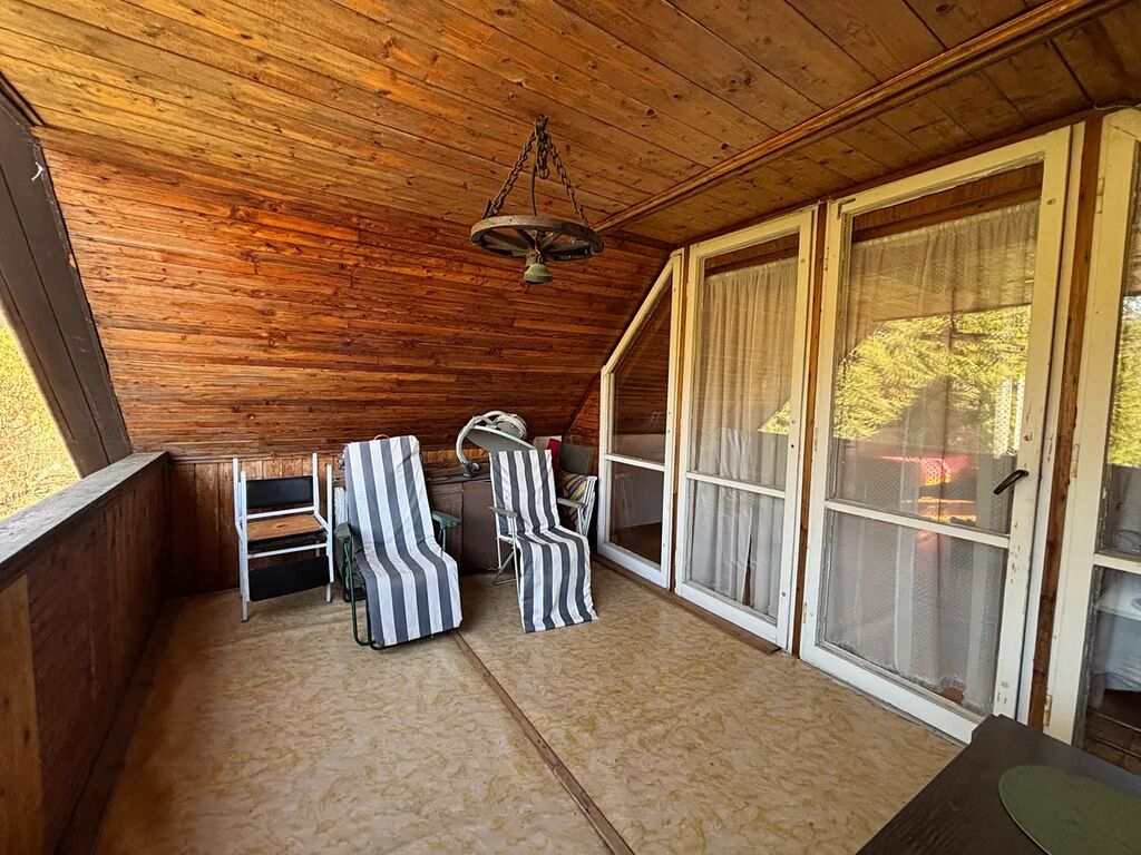 Zděná chata z roku 1964, v roce 1981 chata rozšířena o zděnou část zázemí koupelny a přístavby 2.NP s dřevěnou verandou. Nemovitost je ve velmi dobrém technickém stavu, napojena na obecní studnu s pitnou vodou na půlroční bázi – jaro až podzim, na zimu voda uzavřena. Odpad sveden do jímky, vytápění – kamna na tuhá paliva, ohřev vody – el.bojler. Chata disponuje v 1.NP zádveřím, koupelnou s vanou, chodbou, WC, samostatnou kuchyní, prostorným obývacím pokojem s téměř novými kamny, ložnicí, prosklenou verandou, komorou pod schody. Ve 2.NP je velký otevřený prostor – pokoj s verandou. Dostatek úložného prostoru nabízí pochozí půda, sklep a dřevník na zahradě. Podlahové krytiny – dřevo, dlažba. Na zahradě jsou vysázeny stromy, keře, celý pozemek je oplocen.