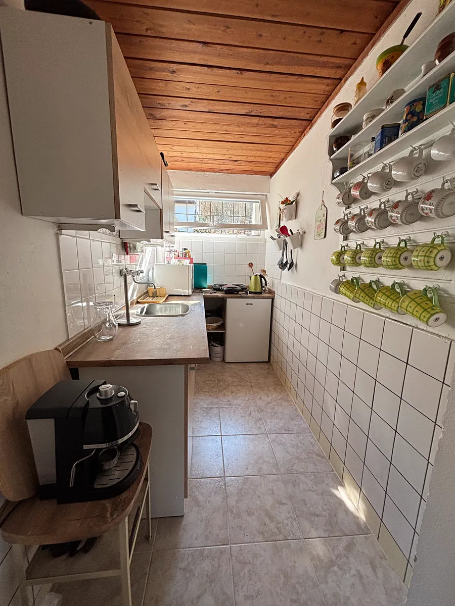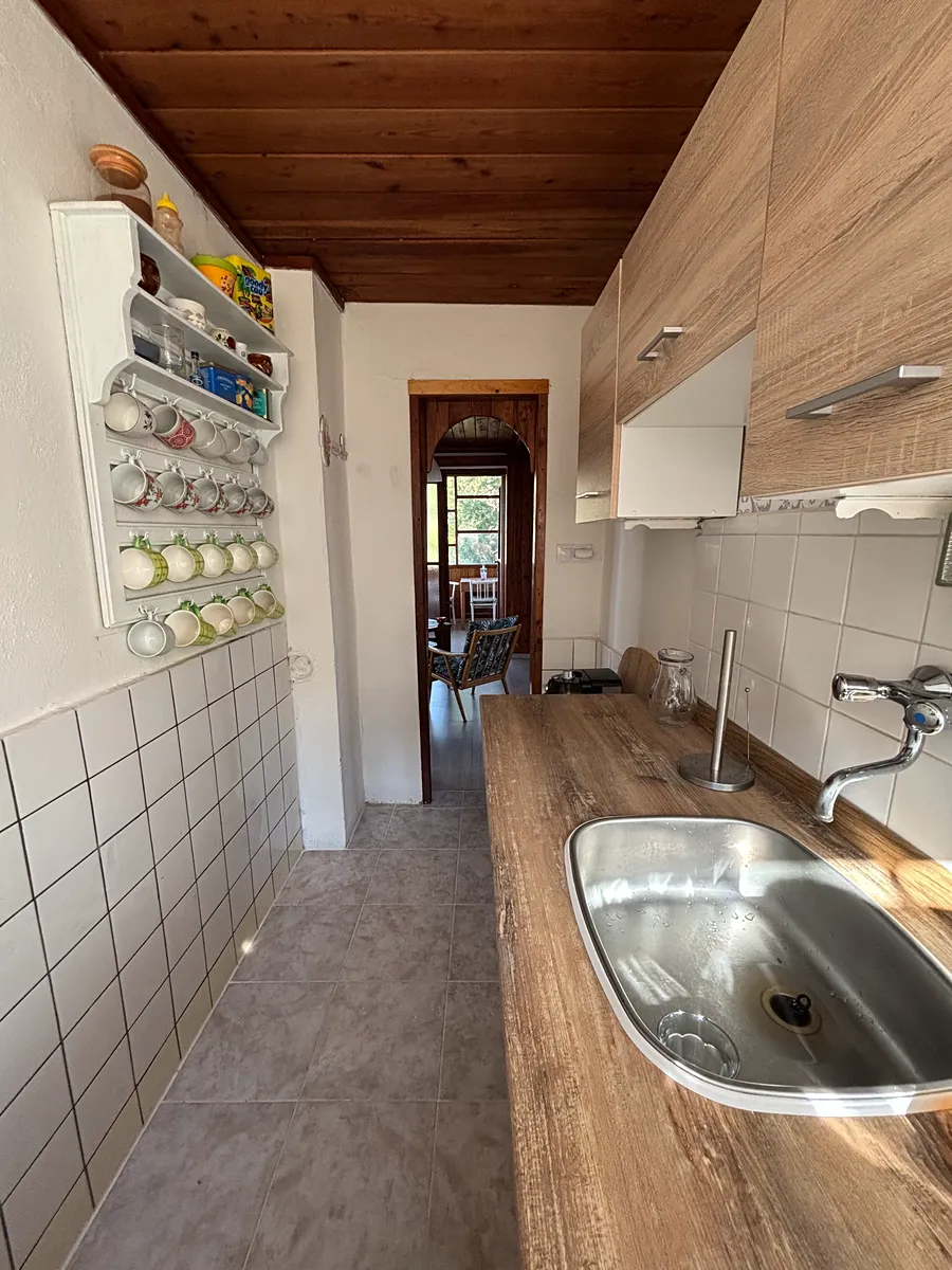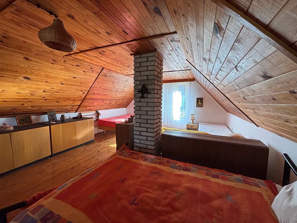 Zděná chata z roku 1964, v roce 1981 chata rozšířena o zděnou část zázemí koupelny a přístavby 2.NP s dřevěnou verandou. Nemovitost je ve velmi dobrém technickém stavu, napojena na obecní studnu s pitnou vodou na půlroční bázi – jaro až podzim, na zimu voda uzavřena. Odpad sveden do jímky, vytápění – kamna na tuhá paliva, ohřev vody – el.bojler. Chata disponuje v 1.NP zádveřím, koupelnou s vanou, chodbou, WC, samostatnou kuchyní, prostorným obývacím pokojem s téměř novými kamny, ložnicí, prosklenou verandou, komorou pod schody. Ve 2.NP je velký otevřený prostor – pokoj s verandou. Dostatek úložného prostoru nabízí pochozí půda, sklep a dřevník na zahradě. Podlahové krytiny – dřevo, dlažba. Na zahradě jsou vysázeny stromy, keře, celý pozemek je oplocen.
