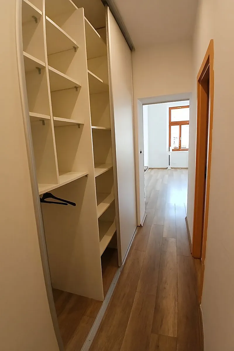 Ihned volné. Možné přihlášení pro cizince. Nabízíme Vám k dlouhodobému pronájmu světlé 2+kk, v 1. patře činžovního domu v pěší dostupnosti od metra Palmovka či Invalidovna. K dispozici obývací pokoj s kuchyňským koutem do ulice. Byt má nová protihluková okna. Linka s elektrickým vařičem, troubou a mikrovlnkou. Ložnice s vlastní šatnou má okna do zeleného vnitrobloku. Koupelna se sprchovým koutem, WC a připojením na pračku. Ústřední vytápění, ohřev vody boilerem. Dostatek úložných prostor vestavěné skříně v předsíni. Výborná dopravní spojení metro, tramvaje i autobusy. Veškerá občanská vybavenost v přímém okolí. Volné ihned. Doporučujeme prohlídku. Možnost dlouhodobého pronájmu i pro cizince.