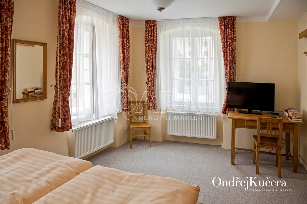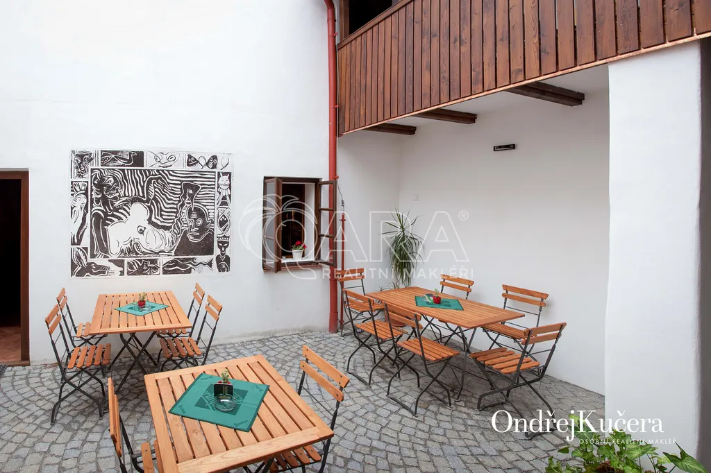 Zrekonstruovaný dům v samém centru Litomyšle leží pouhých 200 metrů od místního zámku. Jeho zastavěná plocha má 414 m2, na kterých se nachází pension s kapacitou osmnácti lůžek, čítajících čtyři apartmány (147 m2) a čtyři pokoje (91 m2). Všechny jsou vybavené kvalitním nábytkem, pohodlnými matracemi, příjemným ložním prádlem a v apartmánech praktickou kuchyňskou linkou ze dřeva. Stejně tak jsou dřevěná repasovaná původní okna, interiérové dveře a podlahy ve všech pokojích. Součástí domu je také mezonetový byt o výměře 105 m2 a prázdná půda o výměře 140 m2. Dále k domu patří již zmíněná plně vybavená hospoda s přilehlým dvorem s kapacitou 44 osob nebo obchod situovaný do náměstí o velikosti 110 m2. Dům celkově využívá vnitřní plochu 825 m2 včetně chodeb a zázemí.