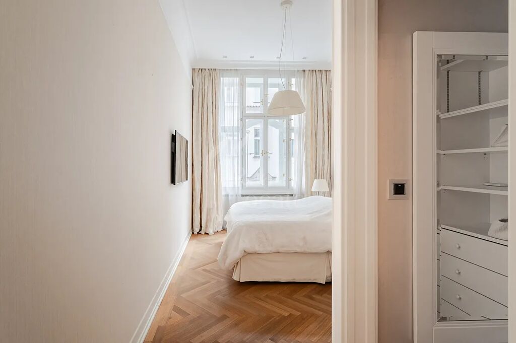 Bytová jednotka je velmi vkusně zařízena a dokončena ve vysokých standardech (dřevěné parkety, klimatizace, skříně a nábytek na míru).