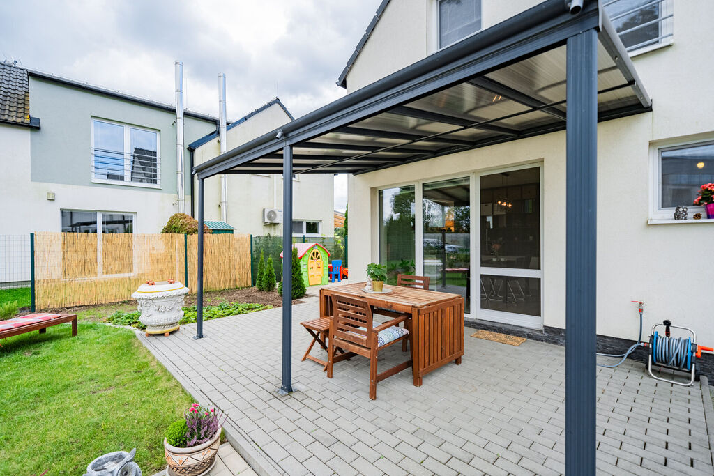 Pokud hledáte bydlení pro Vaši rodinu se zahrádkou a zároveň v blízkosti Prahy, máme pro Vás skvělou nabídku na koupi mezonetového bytu. Jedná se v podstatě o řadový dům s dispozicemi 3kk, 86 m2, zastřešenou terasou, zahradním domkem, parkováním a pečlivě udržovanou zahradou o rozloze 228 m2.