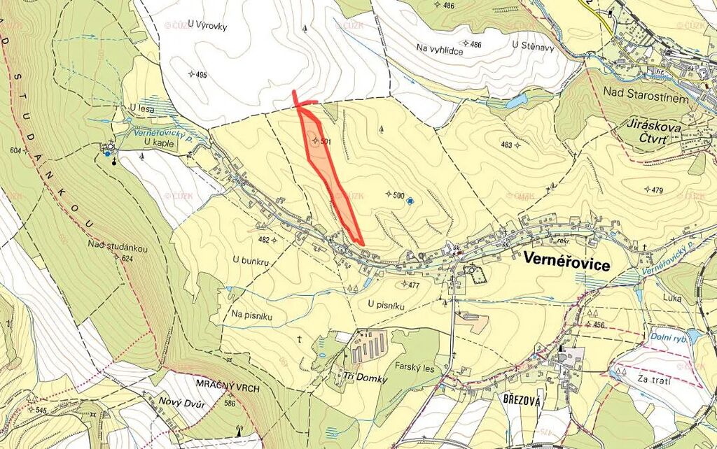 K prodeji nabízím vlastnictví na zemědělském pozemku v katastrálním území Vernéřovice, okres Náchod. Pozemek je zapsán na listu vlastnictví č. 427 a jedná se o parcelu č. 523/31 vedenou jako orná půda.