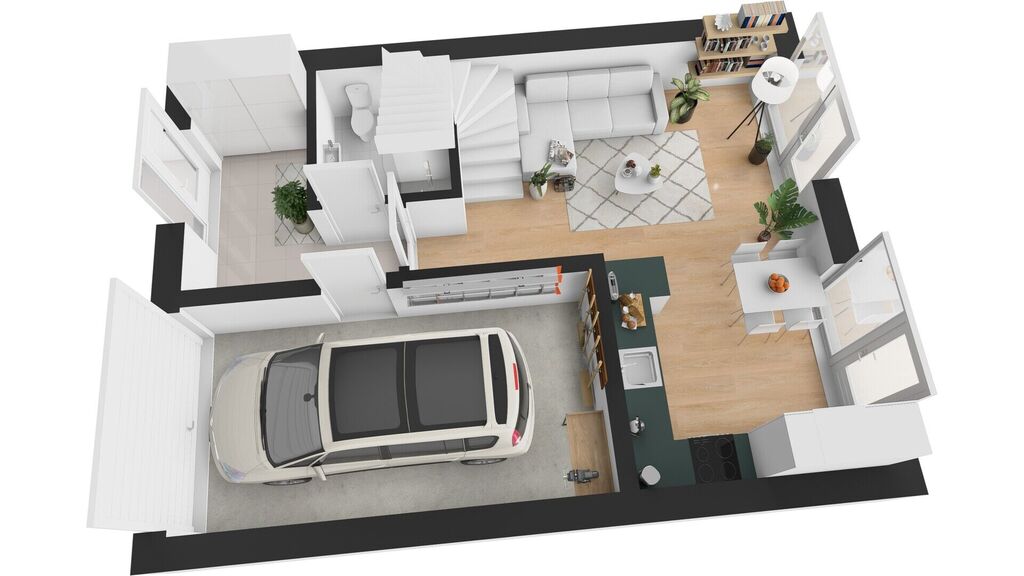 V přízemí domu je obývací pokoj s jídelnou, kuchyní, vstupem na terasu domu a dále do zahrady. Kuchyňská linka je vybavena spotřebiči ( varná deska, digestoř, trouba, mikrovlnná trouba, myčka nádobí, lednice, mrazák). Garáž domu je přístupná vraty na dálkové ovládání a je prakticky propojena dveřmi s interiérem domu, což poskytuje pohodlí v rámci nákupů a umožňuje jednoduché využití garáže v rámci úložného prostoru. V přízemí domu je vstupní chodba, koupelna se sprchou a toaletou. Patro domu má tři samostatné pokoje. V ložnici jsou vestavné skříně. Pokoje je možno využít dle vlastní potřeby, jako dětské pokoje, ložnice či pracovnu. V patře domu je další koupelna se sprchovým koutem a vanou. Toaleta je zde samostatná. V domě jsou předokenní žaluzie. Zahrada domu je velmi pečlivě udržovaná, rovinatá, zatravněná se vzrostlými stromy, dřevinami. Za zmínku stojí také maliny a rybíz. Zahrada má jednoduchý systém zavlažování. Výhodou je úložný domeček a především zastřešená terasa domu, která svým využitím reálně zvětšuje plochu domu.