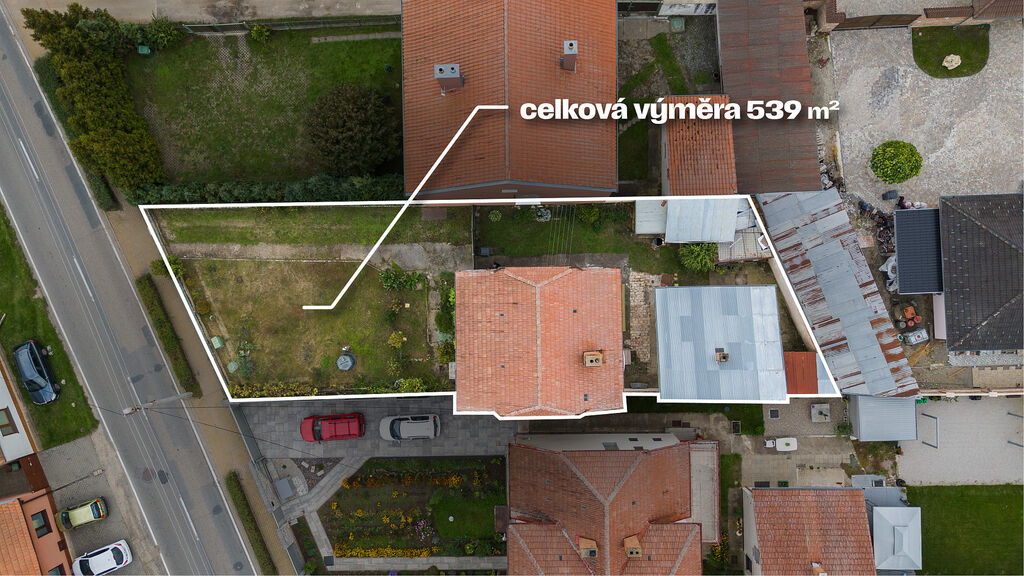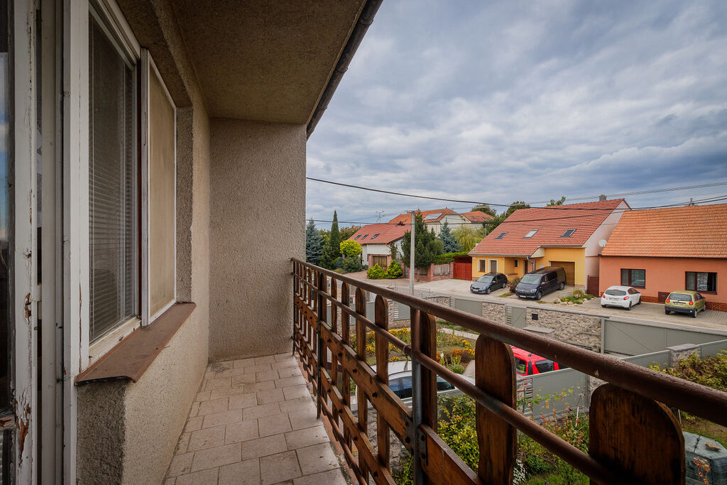 - V patře: 3 neprůchozí pokoje, koupelna s WC, balkon, vstup na půdu (možné využití).