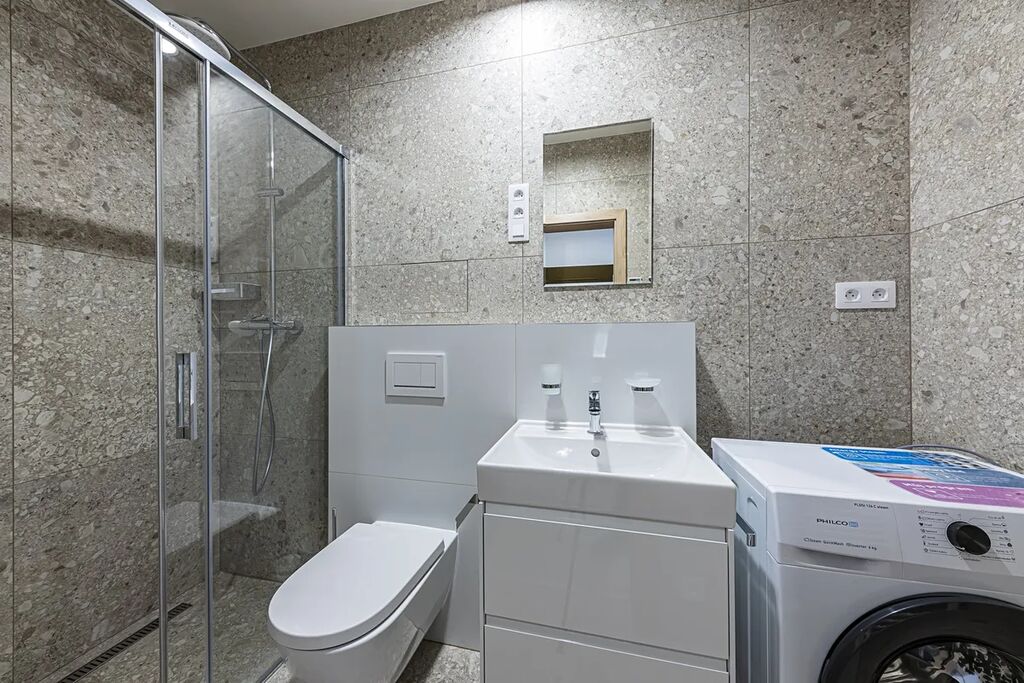 Dům je vybaven výtahem a moderními technologiemi, které přispívají k celkovému komfortu a pohodlí.