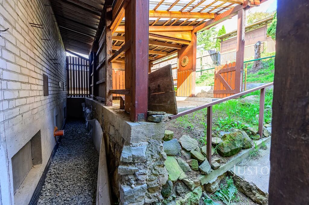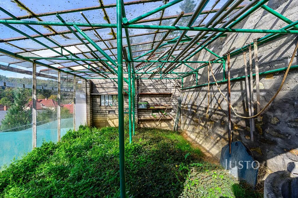 • Zahrada a příslušenství: K domu patří zahrada o výměře 352 m², předzahrádka, dvorek, garáž, dva sklepy, skladový prostor nad garáží, skleník a kovová konstrukce skladu.