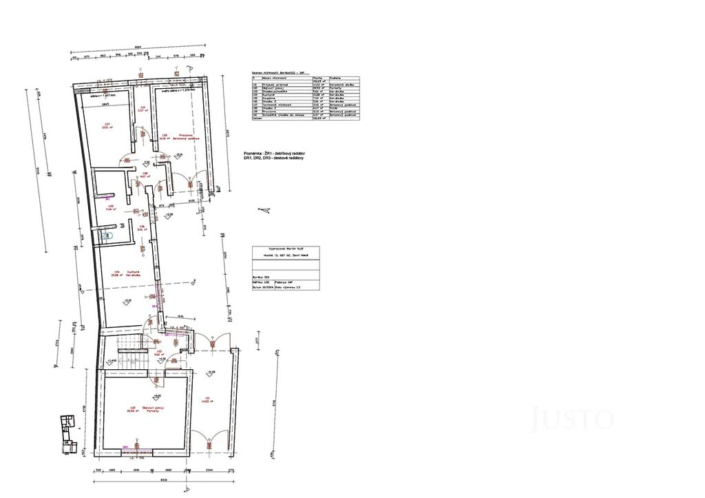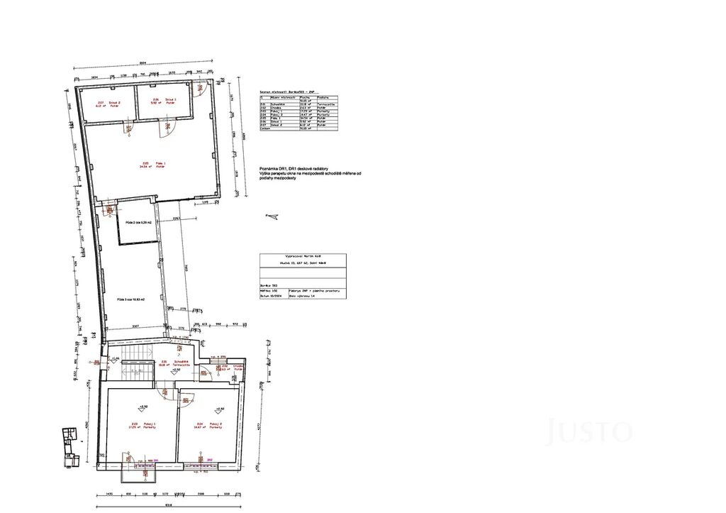 • Užitná plocha: Celková užitná plocha domu je 241,51 m², z toho přízemí 106,69 m², patro 91,15 m² a sklepy 43,67 m².
