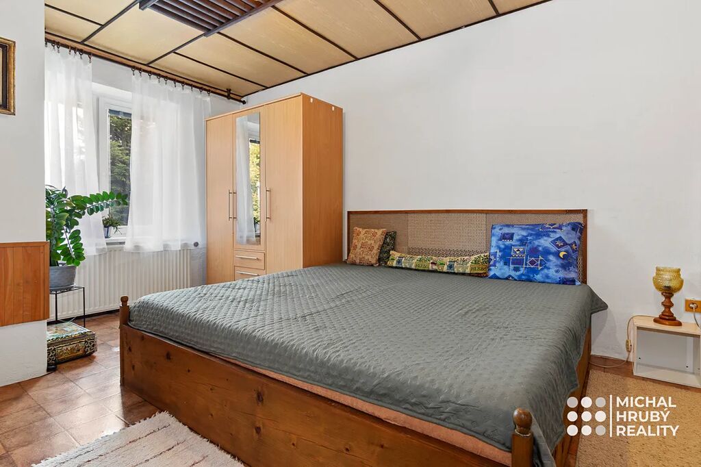 V horním patře jsou celkem tři samostatné neprůchozí pokoje (cca 19 m2 každý), v ložnici je navíc balkón s výhledem na zahradu. Prostorná koupelna, samostatná toaleta i půdní prostor.