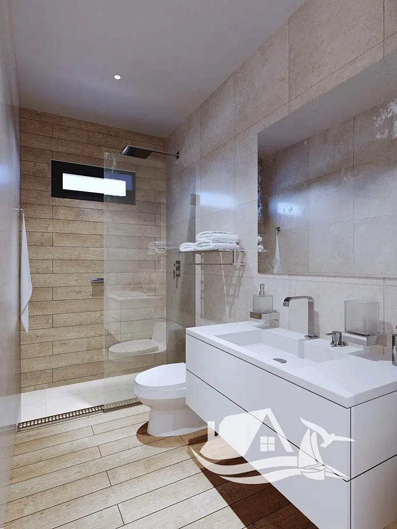 Dům disponuje celkovou plochou 89 m² a je navržen v otevřeném, světlém konceptu. Kuchyň je plně vybavená moderními spotřebiči, na které plynule navazuje obývací část s jídelnou. Ložnice jsou prostorné a nabízejí dostatek úložných prostor, koupelny jsou vybavené kvalitní sanitou a sprchovými kouty se skleněnými zástěnami.