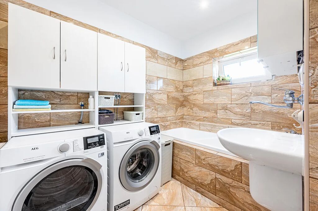 Dům je většinově podsklepený, což výrazně rozšiřuje možnosti využití. V suterénu se nachází prostorná garáž, dílna pro domácí kutily, velký sklep a technologické zázemí s bateriovým systémem.