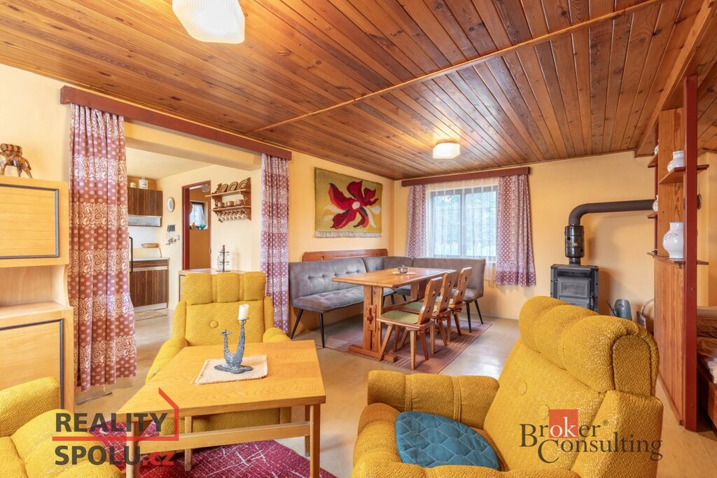 Nemovitost má hlavní obytnou místnost s kuchyňským koutem, posezením a odděleným prostorem pro odpočinek. V chladnějším období si můžete zatopit v krbových kamnech. K dispozici koupelna a WC. Součástí je venkovní terasa sloužící k posezení a grilování.