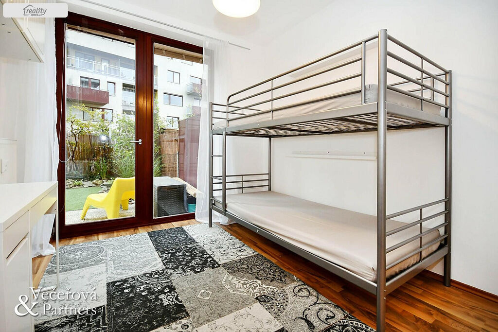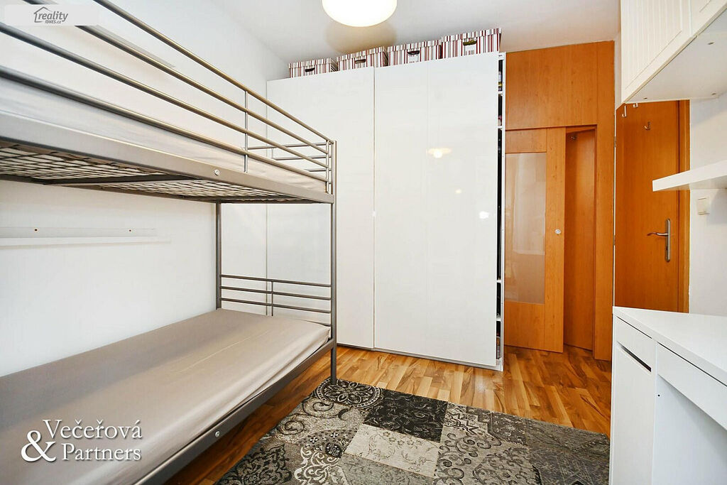 Byt byl původně koncipován jako velké 2+kk, ale chytrou úpravou majitele vytvořili druhou malou ložnici. V bytě se dále nachází dětský pokoj, prostorná komora, koupelna se sprchovým koutem a wc. Velkorysý obývací pokoj s plně vybaveným kuchyňským koutem navazuje na krásnou terasu se zahrádkou.