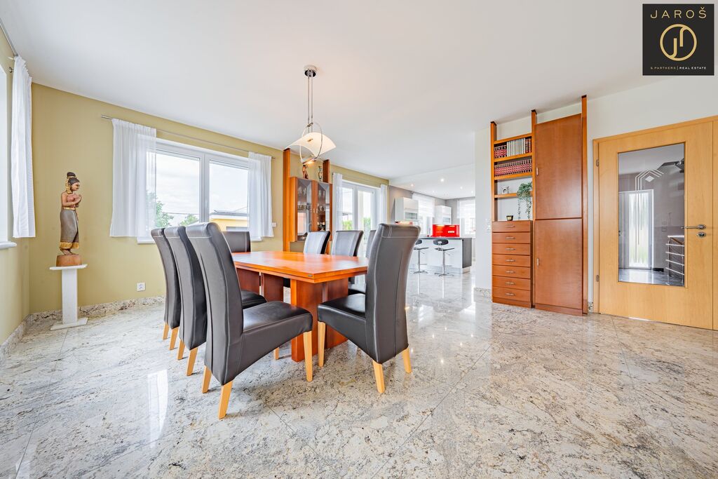 Dům byl postaven v roce 2014 z kvalitních materiálů a nabízí vše, co si můžete přát od moderního rodinného bydlení – prostor, soukromí a důraz na detail. Celková užitná plocha činí 411 m², pozemek má 1 433 m², z toho samotná zahrada zabírá 1 193 m². Přestože se jedná o velkoryse řešený dům, jeho provoz je díky moderním technologiím velmi úsporný – budova spadá do energetické třídy B (velmi úsporná). Součástí je také samostatně stojící dvojgaráž s dílnou o výměře 48 m², kde je připraveno připojení pro nabíjení elektromobilu.