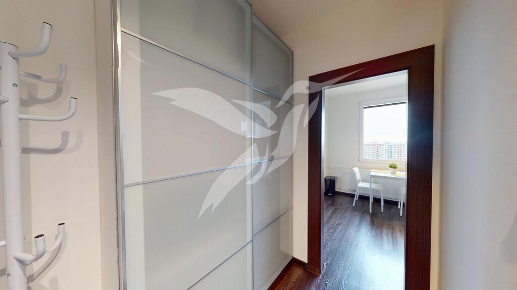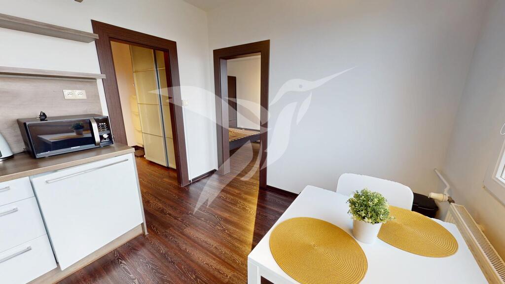 Nabízíme vám k pronájmu krásný, částečně vybavený byt o dispozici 1+1, 38 m2. Byt se nachází v 8. nadzemním podlaží revitalizovaného panelového domu s výtahem. Byt je dispozičně řešen na předsíň, kde najdeme velkou šatní skříň, koupelnu spolu s toaletou, vybavena pračkou, kuchyň s veškerými elektrospotřebiči (zabudovaná myčka, lednice), jídelní stůl se židlemi a samostatný pokoj, kde je k dispozici dvojlůžko, šatní skříň a menší skříňka. Byt je vhodný maximálně pro dvě osoby. Ohřev vody a topení je řešeno dálkově, elektřina se přepisuje na nájemníka. Při podpisu smlouvy se hradí vratná jistota ve výši 20000 Kč a poplatek za zprostředkování. Byt je k dispozici ihned.