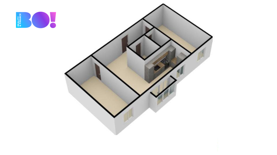 Byt o dispozici 3+1 má prostornou, zasklenou lodžii, kterou lze plně využívat po celý rok. Celková plocha činí 63 m². Obývací pokoj je částečně propojen s kuchyní, koupelna a WC jsou oddělené, všechny pokoje jsou neprůchozí.