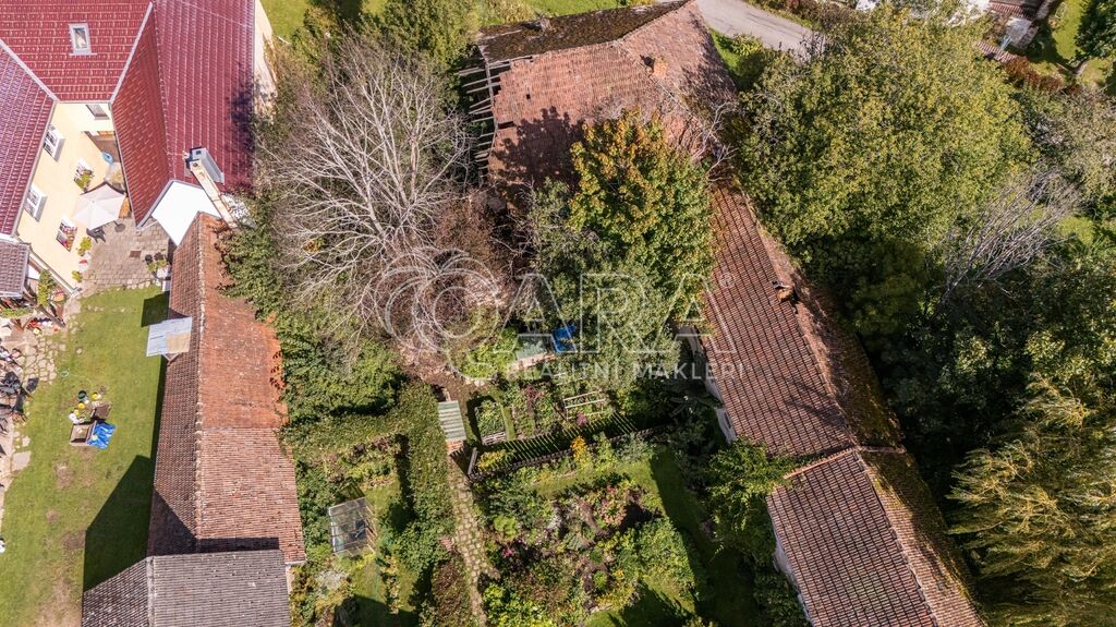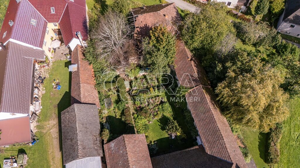 Tato usedlost byla historicky rozdělena na dvě poloviny. Součástí prodeje je stavba před rekonstrukcí, uzavřený dvůr a navazující pozemky: