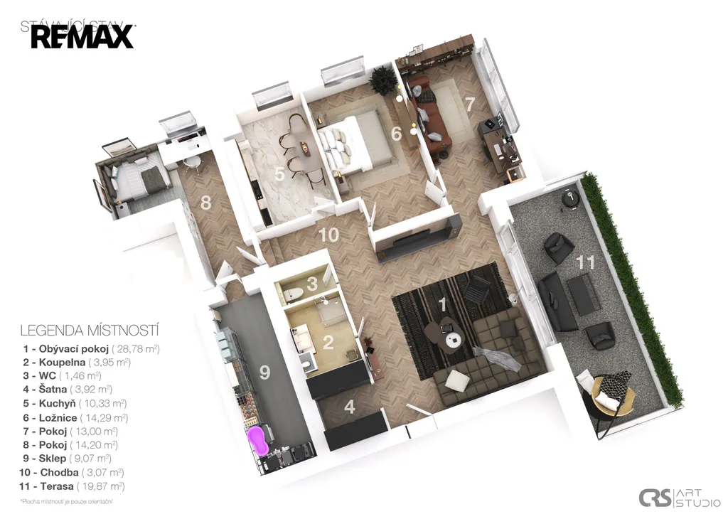 Náhledové fotografie s vybavením jsou vizualizace, aby si budoucí kupující dovedl lépe představit, co se do daného prostoru vejde nebo jak se dá zařídit.
